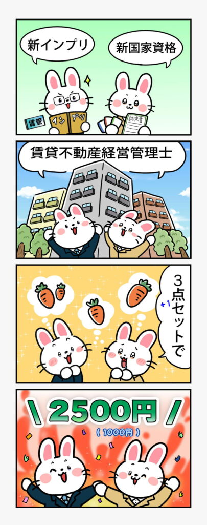過去に宅建・マン管・管業のインプリ教材をご注文されたことがある方は、1,000円でご提供させていただきます。