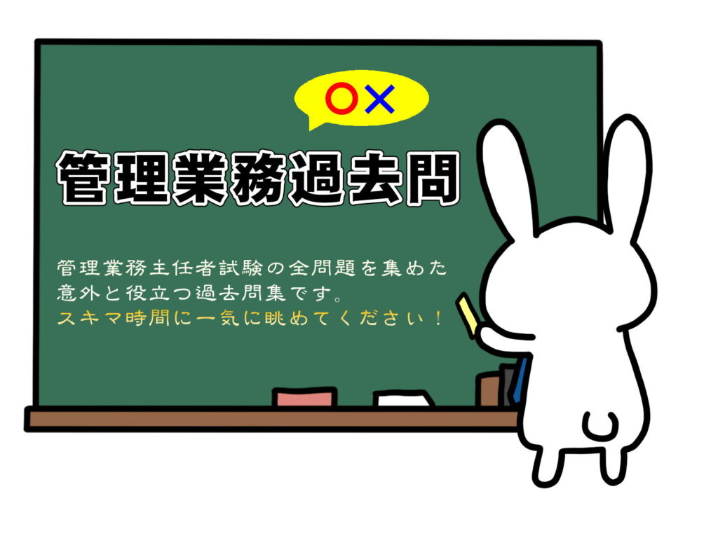 いえ意外どころか、単純知識を幅広く知っているかどうか=単純知識の暗記勝負となる管理業務主任者試験において、片っ端から全過去問の〇×チェックができるその効果は絶大と言えます。いつでもどこでもちょっとした隙間時間に「一気見」できる無料過去問です!(余分な文章は省き、なるべく簡略化して読みやすくしています)